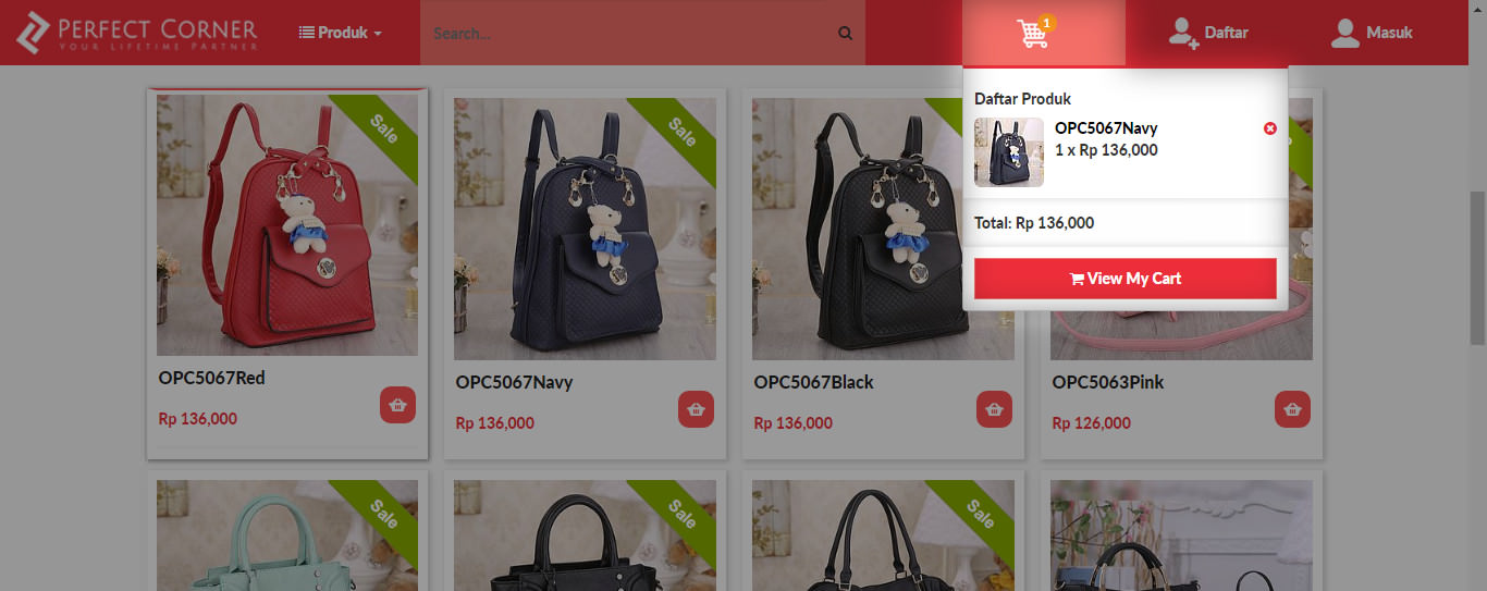 2. Kemudian klik menu “Tas Saya” pada menu yang berada paling atas website. Klik “View My Cart” jika ingin melihat atau merubah jumlah produk yang dibeli.