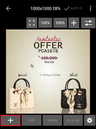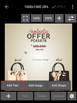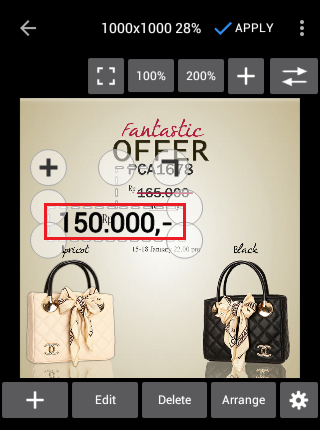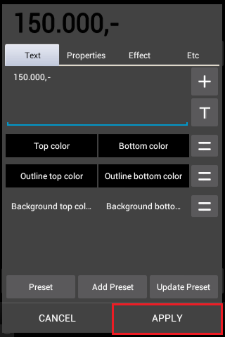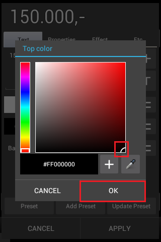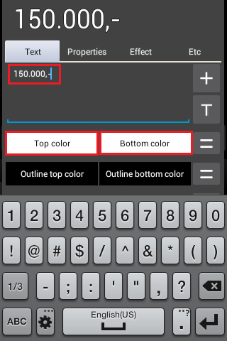 7. Masukkan harga, Contoh : 150.000,- . Kemudian ganti warna dengan klik tombol 'Top color' untuk warna atas dan 'Botton color' untuk warna bawah