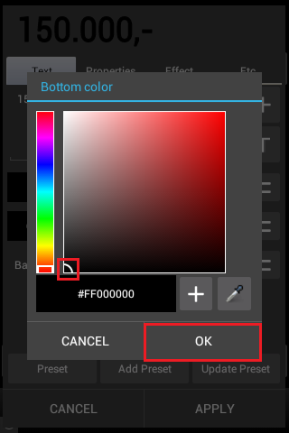 9. Lakukan langkah yang sama pada 'Bottom color' dan klik tombol 'OK'