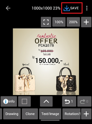 16. Klik tombol 'Save As' untuk menyimpan atau 'Share' untuk berbagi ke medsos yang terinstall pada gadget