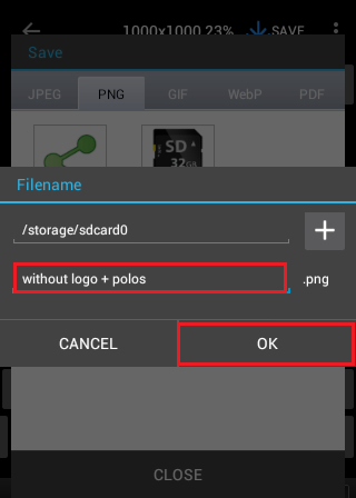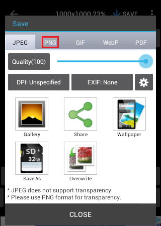 15. Pilih 'PNG' bila foto yang di edit mengandung transparency