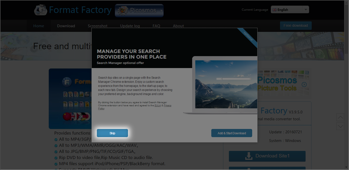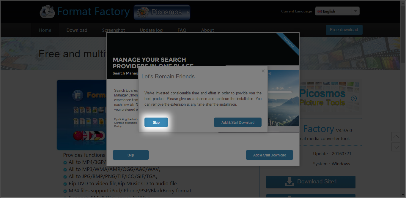 3. Pada saat Anda mengklik salah satu dari “Download Site” yang tersedia, apabila ada muncul sebuah pop-up seperti ini, klik skip saja :