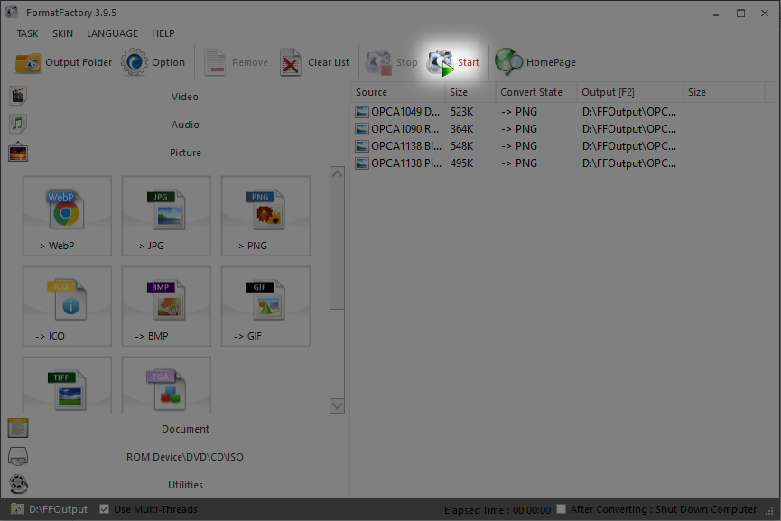 16. Kalau sudah klik OK, klik Start untuk proses mengubah format .JPG dan .PNG